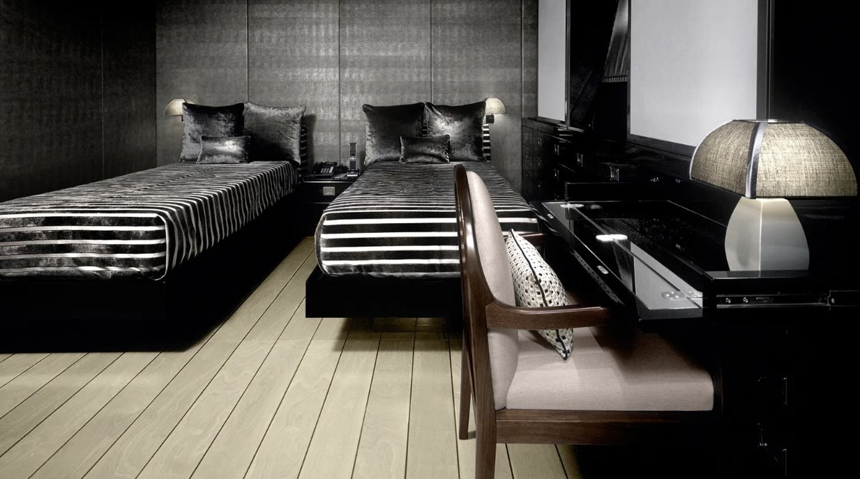 Сред най-ценните акценти сапанели от редки материалии стар японски шкаф – детайли, които превръщат каютите в истински шедьоври.
